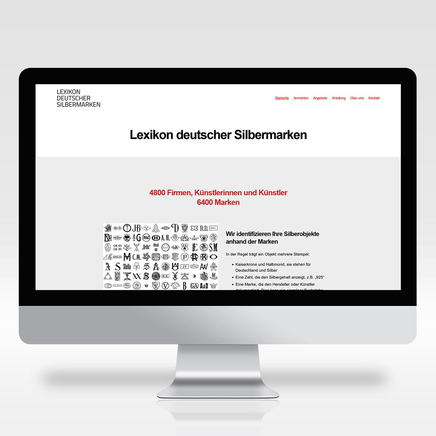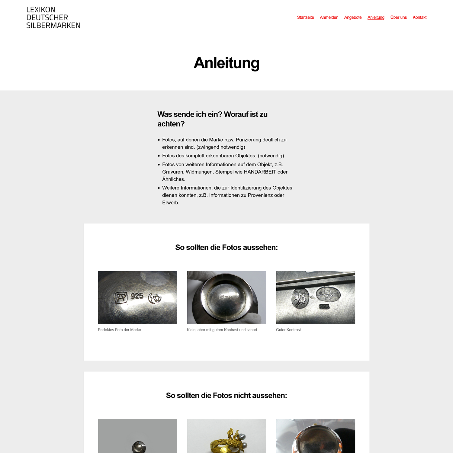 Website des Lexikons mit Beschreibung, Anmelde- und Anfragenformular, Medienuploadfunktion und bebildeter Anleitung.