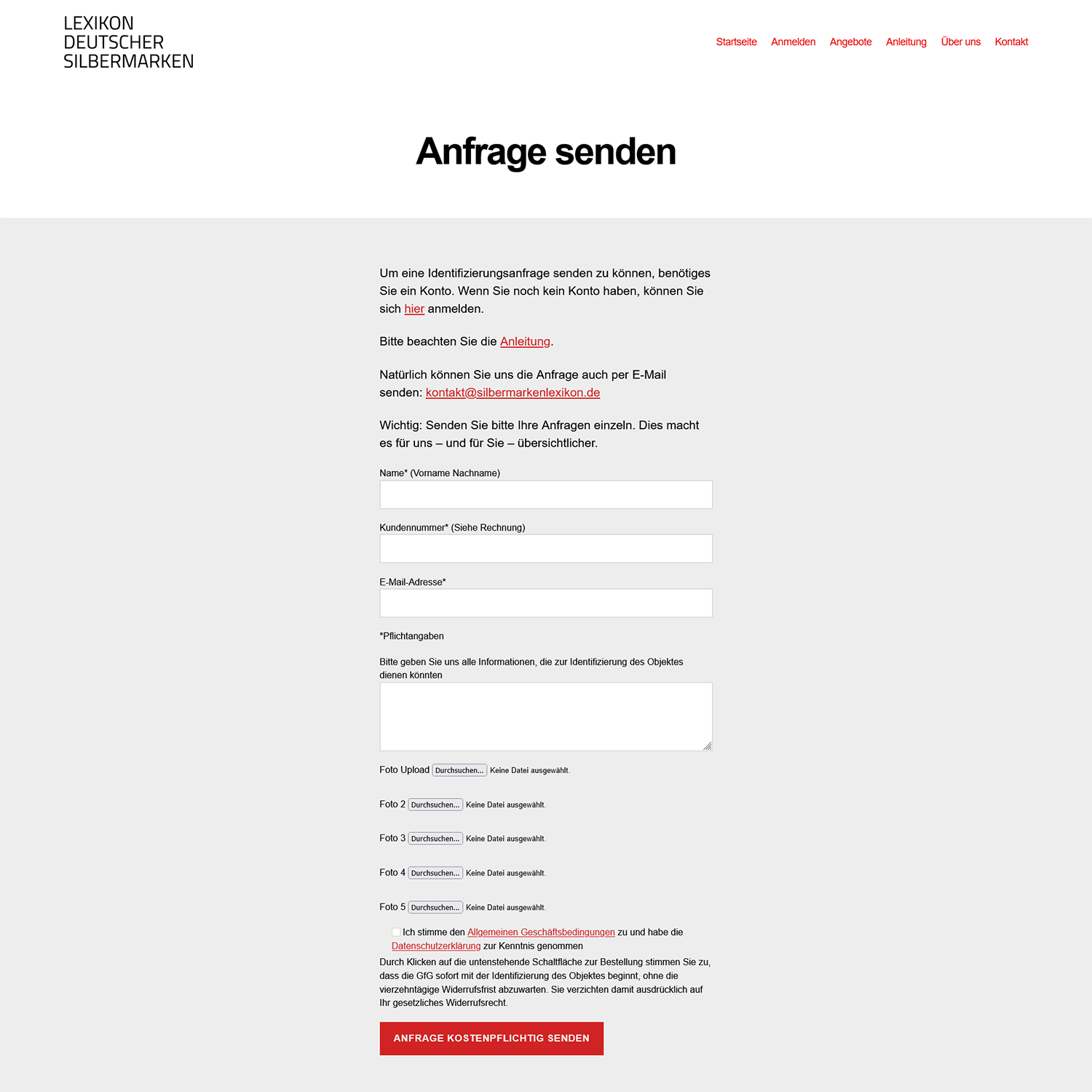 Anfrageformular mit Dateiuploadfunktion